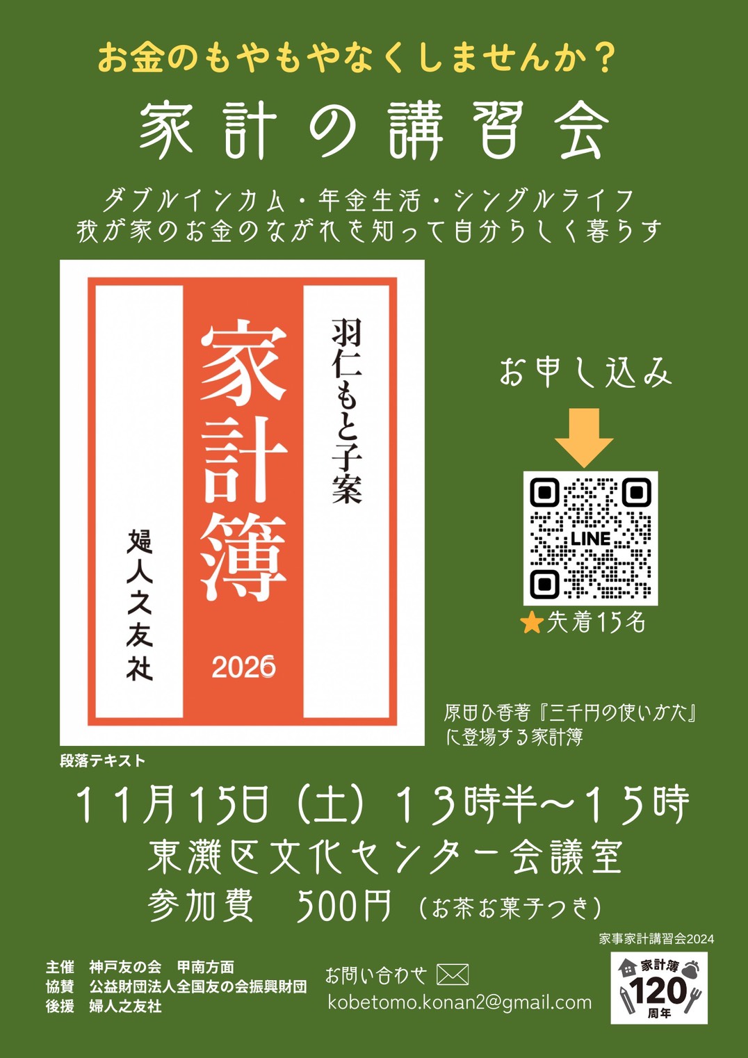 お金のもやもやをなくし、家計の流れを知って、自分らしくお金を使うための講習会です!