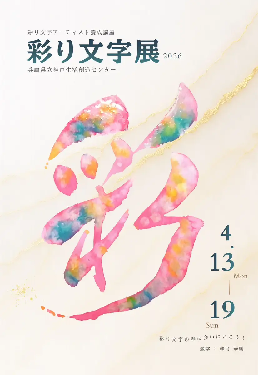 「彩り文字アーティスト養成講座」の受講生による作品展。筆と顔彩を使い、言葉に色を添えて絵画的に表現。