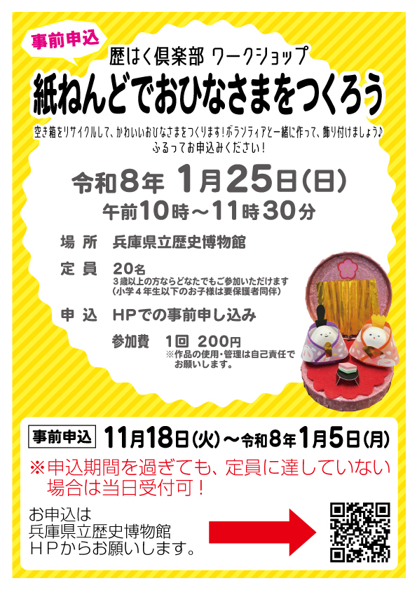 歴はく倶楽部ワークショップ「紙ねんどでおひなさまをつくろう」