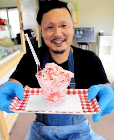 「削りいちご」味わって 凍らせた実、香り豊かな涼感 |