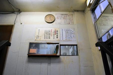 小窓の向こうでは従業員らしき壮年の男性が、いびきをたてて眠っている。ベルを鳴らして、宿泊の目的を告げる。「部屋は?」と尋ね返された。小窓の上には料金表があった。1泊1100円~2100円までの4種類。1550円以上の部屋はテレビ付きだ。