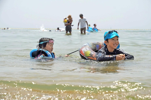 ■大蔵海岸海水浴場が海開き ミニスライダーやベビールーム設置