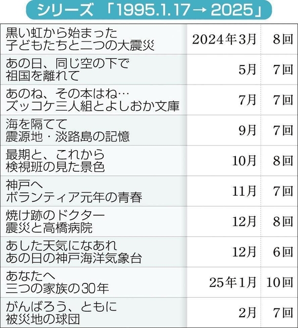 2024年1月17日の朝刊と電子版でスタート。初日は、火災によって一帯が焼けた神戸・長田の商店街の写真だった。