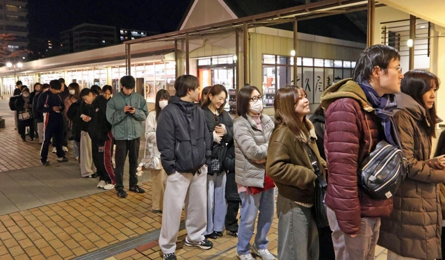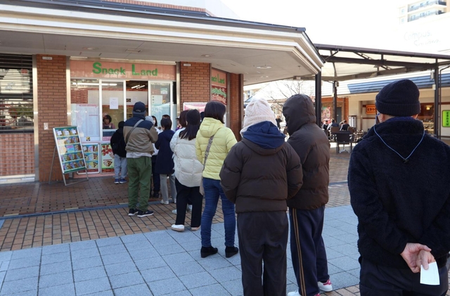 10時48分 青空の下、客が並び始めた。先頭は、近くの幼稚園で働いていたという女性3人組。そろっての来店は20年ぶりという。久保千尋さん(42)は「仕事終わり、まだ間に合いそうって分かったら『行っちゃう?』って顔見合わせてな」と当時を懐かしむ。山田知子さん(41)は「生地が甘じょっぱくておいしい。思い出も含まれてるんかな、ほかで食べても『やっぱりスナックランドが1番』ってなる」