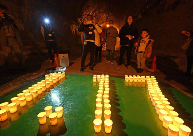 13・25 兵庫区・湊川隧道(ずいどう) 日本最古の近代河川トンネルをひんやりとした空気が包む中、約150人が紙コップに入れた発光ダイオード(LED)を囲み、黙とう。「湊川隧道保存友の会」の新谷和(のどか)会長(78)は「追悼行事が減る中、震災遺構として神戸の歴史を伝え続けたい」とあいさつした。