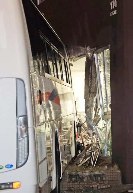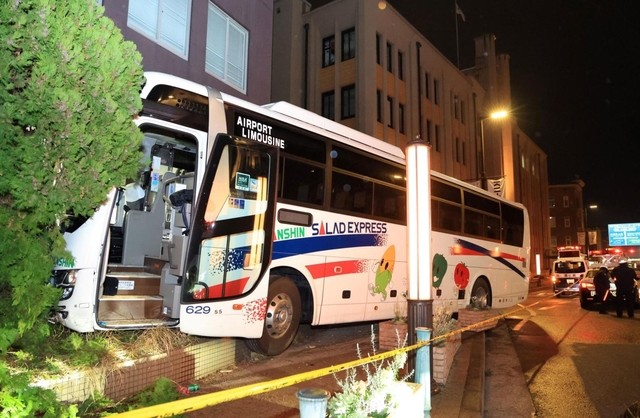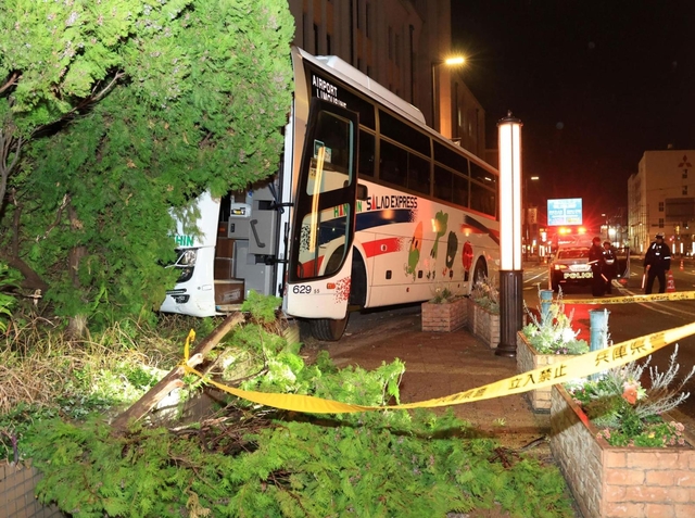 7日午後8時40分ごろ、神戸市中央区小野浜町の神戸税関近くで、「運転手が動けない」と乗客から119番があった。神戸市消防局や神戸水上署によると、大型バスが歩道に乗り上げ、ビルに衝突。運転手は消防が救助したという。