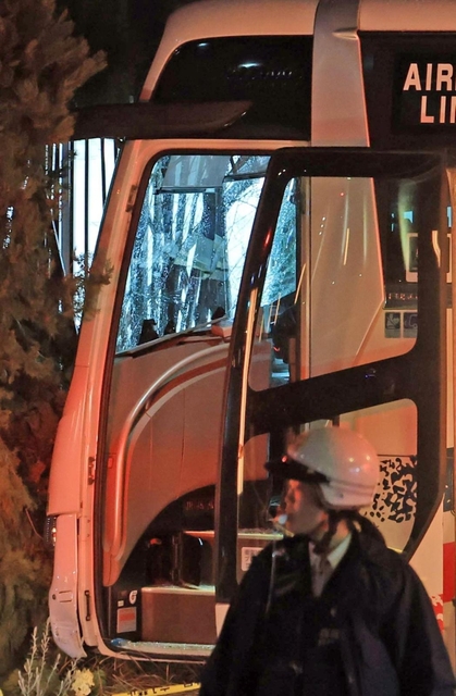 同署などによると、関西空港から神戸・三宮に向かうエアポートリムジンバス。50代の男性運転手は意識があり、病院に搬送された。乗客14人のうち、20代と40代の男性、50代の女性2人の計4人も軽傷を負い、病院に搬送された。
