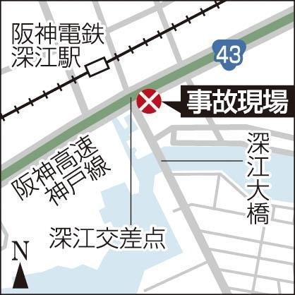 現場は国道43号の西行きで、事故の影響で一部の車線が約3時間にわたり通行止めになった。