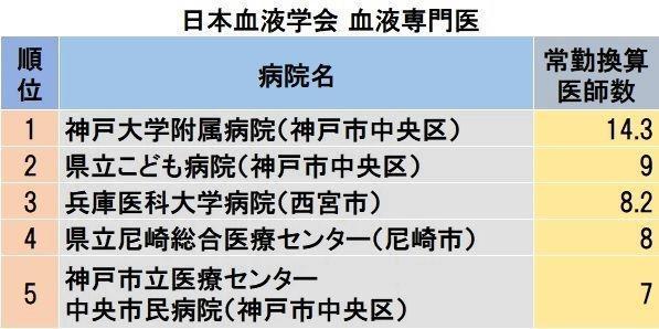 血液は県内40病院が108・8人(常勤換算)を、乳腺は41病院が61・1人(同)を、内分泌代謝科は32病院が70・8人(同)を報告しました。ランキングは専門医を報告した全病院を紹介します。