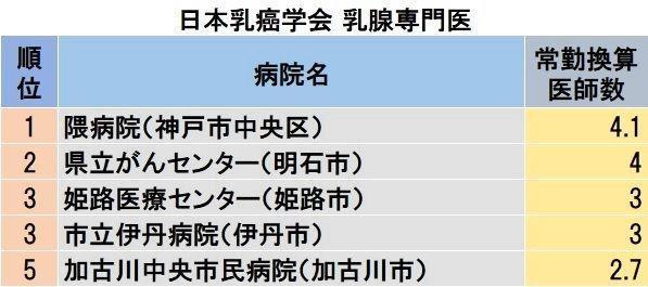 病院ランキング<乳腺>最多・隈は乳がんのオーダーメイド治療 4位の市立伊丹は乳房再建術の認定施設に