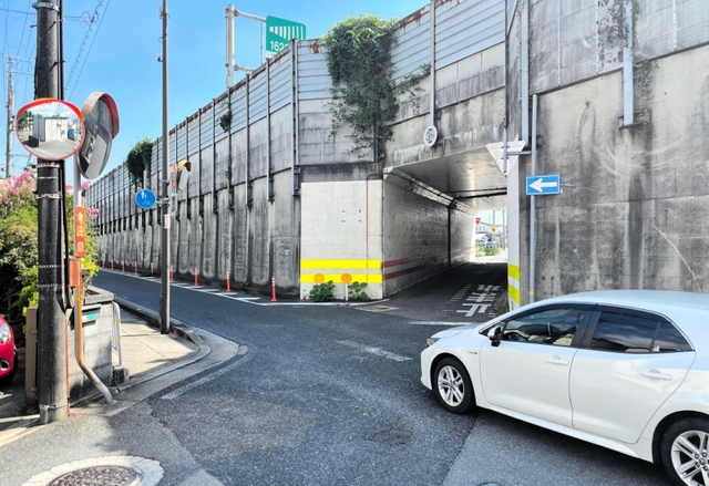 加古川市街地を東西に走る加古川バイパスには、南北を結ぶ道路を確保するため、その下をくぐるトンネル「穴門」がいくつもあります。穴門の出口とバイパスの側道が交わる十字路は見通しが悪く、出合い頭の事故が起きやすい場所です。今回、紹介するのは近くに学校などがある同市野口町の交差点。穴門を抜ける自転車が車両と衝突する事故が相次いでいます。