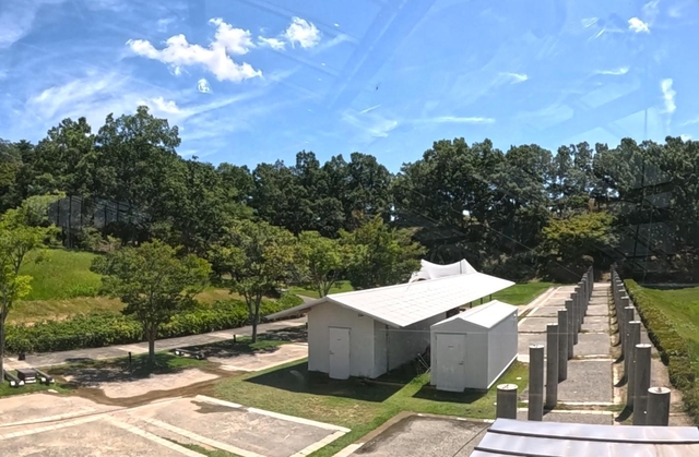 グラスハウスは光が差し込むガラス温室で、レストランやカフェも併設する。鉄骨2階建てで延べ床面積は約1400平方メートル。桜など季節の花が彩り、イチジクやマンゴーも実をつける。