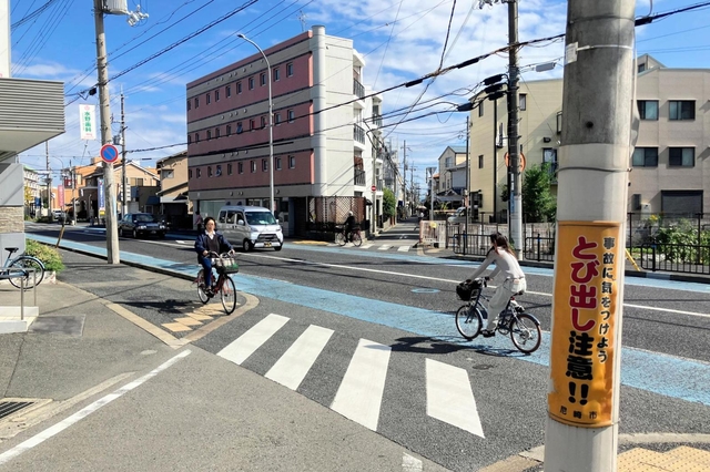県道に斜めに交わる一方通行の路地の出口で、車両と自転車の事故が目立つ場所があります。尼崎市武庫之荘東1の交差点です。曲がろうとした車が県道の車両に気を取られ、横断者に気付かないケースが相次いでいます。先を急ぐ自転車の往来も多く、ドライバーは路地の出口で十分に徐行し、よく確認して県道に合流してもらいたい。