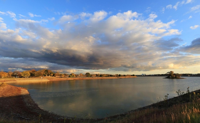 加古大池は1660年ごろに築造が始まり、十数年かけて六つの池が完成したと伝わる。新田開発とともに増築され、貯水面積約49ヘクタールは県内一。周囲よりも高く築かれ、視界を遮る構造物などが少ないため空が広い。一日の太陽の動きを追うにはもってこいのスポットだ。