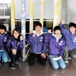 鎮魂の灯籠を作った赤穂高校定時制の生徒ら=赤穂市海浜町