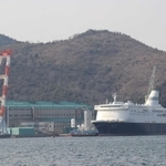船内から見える工場や大型フェリー=相生市内