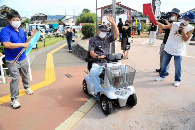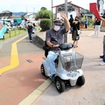 辻川山公園内を電動車いすで走り抜ける選手=福崎町西田原