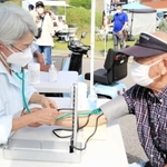 • 「ピットイン」では血圧測定やもち麦食による栄養補給も=福崎町西田原