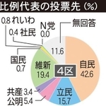 10月の衆院選の比例代表で、立憲民主党と国民民主党が同じ略称として採用した「民主党」と書かれた票が、全国で約360万票に上ったことが、神戸新聞社の集計で分かった。どちらの党への投票か判断できず、開票区ごとに両党の得票に応じて案分された。兵庫県を含む近畿ブロックでは、両党の得票合計の22・7%を占めており、識者は有権者の意思を正確に反映できないとして、制度改正を求めている。(長谷部崇)