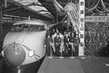 午前11時39分、観光特急「ウエストエクスプレス銀河」が姫路から到着すると、ジャズの演奏や有馬芸妓による灘の酒のふるまいで、乗客をもてなした。