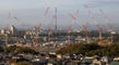 交差する木と木の間から子どもたちが顔をのぞかせる。「カンカンカン-」。くさびを打つ木づちの音が小気味よくリズムを刻む。