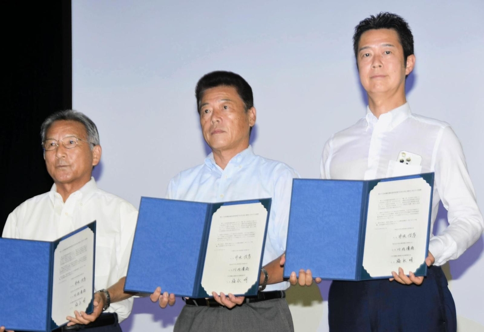 次期衆院選 立民、国民の兵庫県連と連合兵庫が選挙協力 合意書を締結 県内初 2024/8/2 19:12 印刷 社会 選挙 次期衆院選での選挙協力で合意書を交わした(左から)国民民主党兵庫県連の川内清尚代表、連合兵庫の福永明会長、立憲民主党県連の井坂信彦代表=神戸市中央区下山手通6、兵庫県中央労働センター 記事へ戻る 関連記事 効果が上がらなかった自公の選挙協力、立民の後退は時代の流れ 豊田真由子が2022年参院選をおさらい 斎藤・兵庫県知事「旧統一教会と関わりない」 会見で言及、関連行事への出席なし 次期衆院選、兵庫の公明「牙城」に強い危機感 候補擁立に意欲の維新、自民の一部に主戦論も 立民の泉代表、次期衆院選の目標を「自民上回る議席の獲得」 兵庫での他党との連携は 維新、兵庫知事対応に苦慮 「かばっている」不満も 関連記事 効果が上がらなかった自公の選挙協力、立民の後退は時代の流れ 豊田真由子が2022年参院選をおさらい 斎藤・兵庫県知事「旧統一教会と関わりない」 会見で言及、関連行事への出席なし 次期衆院選、兵庫の公明「牙城」に強い危機感 候補擁立に意欲の維新、自民の一部に主戦論も 立民の泉代表、次期衆院選の目標を「自民上回る議席の獲得」 兵庫での他党との連携は 維新、兵庫知事対応に苦慮 「かばっている」不満も きょうの注目記事 川重、万博出展の「コルレオ」30年実用化へ 4本脚で駆ける乗り物 12/3 19:48 経済 川崎重工業 橋本康彦氏 首都圏地盤のスーパー「オーケー」、神戸1号店を垂水にオープン 12/3 16:30 経済 開店閉店 神戸 頌栄短期大学と頌栄幼稚園、一転存続へ 神戸学園グループが経営継承 12/3 20:33 社会 教育 神戸 フィギュアGPファイナル4日開幕 坂本花織が公式練習、2年ぶりの優勝に意欲 12/3 22:22 スポーツ KAORI 有終の瞬間 フィギュア 斎藤知事「議会の真摯な議論に感謝」 自身の給与減額案再提出受け 12/3 19:10 社会 再負託 斎藤県政 神戸6歳児暴行死、母親ら3姉妹は「叔父の洗脳影響」 公判で精神鑑定医 12/3 22:59 神商議・川崎会頭「尊敬すべき経済人」 水越氏死去でコメント 12/3 18:17 経済 神戸製鋼所 商工会議所 川崎博也氏 冬の冷え込み厳しく 4日は兵庫北部で降雪の見込み 12/3 19:05 社会 神戸マツダの整備士養成校が完成 来年4月開校予定 12/3 18:56 経済 教育 中学部活の地域展開、丹波・淡路5市はいつ移行? 12/3 16:30 社会 ひょうごブカツ→@地域 丹波 「ゆずりは賞」に児童生徒28人3団体【名簿あり】 12/3 16:30 <近日公開 12月のオススメ記事>「永楽館」特集、連載「命のリング」、フィギュア五輪前哨戦…etc. 12/3 19:10 きょうの注目記事 川重、万博出展の「コルレオ」30年実用化へ 4本脚で駆ける乗り物 12/3 19:48 経済 川崎重工業 橋本康彦氏 首都圏地盤のスーパー「オーケー」、神戸1号店を垂水にオープン 12/3 16:30 経済 開店閉店 神戸 頌栄短期大学と頌栄幼稚園、一転存続へ 神戸学園グループが経営継承 12/3 20:33 社会 教育 神戸 フィギュアGPファイナル4日開幕 坂本花織が公式練習、2年ぶりの優勝に意欲 12/3 22:22 スポーツ KAORI 有終の瞬間 フィギュア 斎藤知事「議会の真摯な議論に感謝」 自身の給与減額案再提出受け 12/3 19:10 社会 再負託 斎藤県政 神戸6歳児暴行死、母親ら3姉妹は「叔父の洗脳影響」 公判で精神鑑定医 12/3 22:59 神商議・川崎会頭「尊敬すべき経済人」 水越氏死去でコメント 12/3 18:17 経済 神戸製鋼所 商工会議所 川崎博也氏 冬の冷え込み厳しく 4日は兵庫北部で降雪の見込み 12/3 19:05 社会 神戸マツダの整備士養成校が完成 来年4月開校予定 12/3 18:56 経済 教育 中学部活の地域展開、丹波・淡路5市はいつ移行? 12/3 16:30 社会 ひょうごブカツ→@地域 丹波 「ゆずりは賞」に児童生徒28人3団体【名簿あり】 12/3 16:30 <近日公開 12月のオススメ記事>「永楽館」特集、連載「命のリング」、フィギュア五輪前哨戦…etc. 12/3 19:10 社会新着ニュース 社会新着ニュース