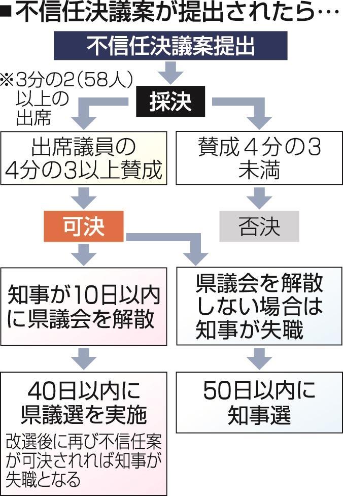 斎藤知事に対する不信任決議案 兵庫県議会の全86議員が定例会初日に共同提出で一致、可決は確実視 2024/9/12 21:26 印刷 社会 揺れる県政 地方行政 不信任決議案が提出されたら… 記事へ戻る 関連記事 斎藤知事の後援会、トップのアシックス尾山氏辞任 「言動にがっかり」経済界との断絶決定的 後援会トップ退いた尾山氏一問一答「ここまでの状態になって知事辞めないのも不可解」 【動画】「進む道は自分が決める」斎藤知事、維新要求も辞職否定 斎藤知事から午前1時前にチャットで叱責「全くできていない」 職員は休日でも返信 片山元副知事「産業労働部長の時、ゴルフクラブ2本受け取った」「気が緩んでいた」 関連記事 斎藤知事の後援会、トップのアシックス尾山氏辞任 「言動にがっかり」経済界との断絶決定的 後援会トップ退いた尾山氏一問一答「ここまでの状態になって知事辞めないのも不可解」 【動画】「進む道は自分が決める」斎藤知事、維新要求も辞職否定 斎藤知事から午前1時前にチャットで叱責「全くできていない」 職員は休日でも返信 片山元副知事「産業労働部長の時、ゴルフクラブ2本受け取った」「気が緩んでいた」 きょうの注目記事 阪神・淡路大震災31年 1.17追悼行事が最少37件の見通し 市民団体「風化の兆し感じる」 12/19 05:30 ウクライナの戦禍伝える万博展示品、神院大に譲渡 戦場で使われた兵士のヘルメットも 12/19 05:30 明石市がデジタル商品券「タコペイ」再販売へ 市内店舗で使用可能 水道基本料金も免除 12/19 05:30 フィギュア三原舞依が今季限りで引退 22年GPファイナル覇者 同門の坂本花織に続き表明 12/18 20:55 兵庫県マロニエ賞に48人14団体 神戸弘陵高女子硬式野球部や彩星工科高男子バドミントン部【名簿あり】 12/19 05:30 陸自第3師団長・南川陸将が着任「災害派遣、実力を高める」 伊丹 12/19 05:30 サッカー・神戸ユース、悲願の日本一へ「攻撃的なスタイル貫く」 21日高円宮杯U-18ファイナル 12/19 05:30 尼崎脱線事故の車両保存施設完成、JR西社長「感慨深い」 発生20年「事故の重さ改めて感じる」 12/19 05:30 「はばタンPay+」子育て応援枠申請、前回から1万世帯下回る 個人情報漏えいが影響か 兵庫県 12/18 17:15 宝塚市が商品券3千円分を配布へ 物価高対策で4月以降 65歳以上、住民税非課税世帯は加算 12/18 20:15 川西市がおこめ券配布と水道基本料金免除を発表 国の臨時交付金で物価高対策 12/18 14:50 芦屋市、キャッシュレス決済で20%還元へ 物価高対策で来年2月、市内1400店舗対象 12/18 17:30 きょうの注目記事 阪神・淡路大震災31年 1.17追悼行事が最少37件の見通し 市民団体「風化の兆し感じる」 12/19 05:30 ウクライナの戦禍伝える万博展示品、神院大に譲渡 戦場で使われた兵士のヘルメットも 12/19 05:30 明石市がデジタル商品券「タコペイ」再販売へ 市内店舗で使用可能 水道基本料金も免除 12/19 05:30 フィギュア三原舞依が今季限りで引退 22年GPファイナル覇者 同門の坂本花織に続き表明 12/18 20:55 兵庫県マロニエ賞に48人14団体 神戸弘陵高女子硬式野球部や彩星工科高男子バドミントン部【名簿あり】 12/19 05:30 陸自第3師団長・南川陸将が着任「災害派遣、実力を高める」 伊丹 12/19 05:30 サッカー・神戸ユース、悲願の日本一へ「攻撃的なスタイル貫く」 21日高円宮杯U-18ファイナル 12/19 05:30 尼崎脱線事故の車両保存施設完成、JR西社長「感慨深い」 発生20年「事故の重さ改めて感じる」 12/19 05:30 「はばタンPay+」子育て応援枠申請、前回から1万世帯下回る 個人情報漏えいが影響か 兵庫県 12/18 17:15 宝塚市が商品券3千円分を配布へ 物価高対策で4月以降 65歳以上、住民税非課税世帯は加算 12/18 20:15 川西市がおこめ券配布と水道基本料金免除を発表 国の臨時交付金で物価高対策 12/18 14:50 芦屋市、キャッシュレス決済で20%還元へ 物価高対策で来年2月、市内1400店舗対象 12/18 17:30 社会新着ニュース 社会新着ニュース