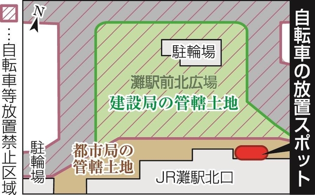 そこで広場を管轄する市建設局に問い合わせると、意外な答えが返ってきた。「実は(放置スポットだけ)ピンポイントで建設局の所管ではないんです…」