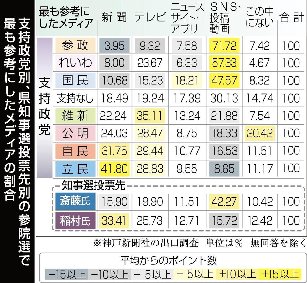 新興政党と既成政党、支持者の参考メディアで違い鮮明 参院選兵庫選挙区 出口調査 2025/8/16 22:35 印刷 社会 参院選 支持政党別、県知事選投票先別の参院選で最も参考にしたメディアの割合 記事へ戻る 関連記事 いざ投票、素朴なギモン 誰でも別人に成りすませる? ネットの誤情報…選管に聞いた 参政党の神谷代表発言「選択的夫婦別姓で治安が悪くなる」は「不正確・根拠不明」 「外国人増加で治安悪化」の言説、警察庁「単純に論ずることは困難」 参院選中、ネットで飛び交う 石破首相発言「消費減税は金持ちに恩恵」は本当? 選挙公報に「根拠不明」な言説 関連記事 いざ投票、素朴なギモン 誰でも別人に成りすませる? ネットの誤情報…選管に聞いた 参政党の神谷代表発言「選択的夫婦別姓で治安が悪くなる」は「不正確・根拠不明」 「外国人増加で治安悪化」の言説、警察庁「単純に論ずることは困難」 参院選中、ネットで飛び交う 石破首相発言「消費減税は金持ちに恩恵」は本当? 選挙公報に「根拠不明」な言説 きょうの注目記事 学童保育の待機児童、兵庫で急増 7割は阪神間4市、受け皿確保に苦慮<ローカル+α> 10/2 05:30 ローカル+α 子育て 教育 社会 小冊子「ZINE」で届ける、若手美術家4人の人生 ひとり出版社の高橋さん「加東を面白いまちに」 10/2 05:30 北播 【独自】大麻草をビルなどで5400万円相当の100株超栽培 容疑で男3人逮捕 10/2 14:00 事件・事故 神戸市東灘区ならでは、4日開幕「スイーツめぐり」 アサイースムージーに酒かす…大学生と地元店がコラボ 10/2 05:30 神戸 グルメ 神戸フィルムオフィス25周年、撮影誘致や支援の5作品上映 5日から2劇場、ゲストと裏話も紹介 10/2 05:30 文化 神戸 兵庫の企業、内定者定着へ魅力アピール 社内行事に一足早く招待も 3人に2人が辞退の傾向 10/2 05:30 経済 ジャパンエンジンコーポレーション 山陽電気鉄道 ウィル みなと銀行 史上最も暑く、豪雨被害もあった三田の夏 7~9月 最高気温39.0度を観測、猛暑日は計24日 10/2 05:30 三田 御影石で本立てやコースター 神戸の老舗石材店が雑貨の新ブランド 墓じまい進む世代も「石好きに」 10/2 05:30 神戸 JR加古川駅前でくつろいで 広場に飲食店、商店街を歩行者天国化 市が社会実験、3日から催し 10/2 05:30 東播 明石天文科学館としばしの別れ、全国のファン惜しむ 老朽化設備をリニューアル、26年夏まで長期休館 10/2 05:30 明石 道の駅うずしおの新キャラ、timelesz松島聡さんが考案 10/2 05:30 淡路 斎藤知事「神戸市長選は特定候補の支援せず」 タワマン規制に対する論戦に注目 10/1 21:34 社会 選挙 神戸市長選 神戸 動画ニュース きょうの注目記事 学童保育の待機児童、兵庫で急増 7割は阪神間4市、受け皿確保に苦慮<ローカル+α> 10/2 05:30 ローカル+α 子育て 教育 社会 小冊子「ZINE」で届ける、若手美術家4人の人生 ひとり出版社の高橋さん「加東を面白いまちに」 10/2 05:30 北播 【独自】大麻草をビルなどで5400万円相当の100株超栽培 容疑で男3人逮捕 10/2 14:00 事件・事故 神戸市東灘区ならでは、4日開幕「スイーツめぐり」 アサイースムージーに酒かす…大学生と地元店がコラボ 10/2 05:30 神戸 グルメ 神戸フィルムオフィス25周年、撮影誘致や支援の5作品上映 5日から2劇場、ゲストと裏話も紹介 10/2 05:30 文化 神戸 兵庫の企業、内定者定着へ魅力アピール 社内行事に一足早く招待も 3人に2人が辞退の傾向 10/2 05:30 経済 ジャパンエンジンコーポレーション 山陽電気鉄道 ウィル みなと銀行 史上最も暑く、豪雨被害もあった三田の夏 7~9月 最高気温39.0度を観測、猛暑日は計24日 10/2 05:30 三田 御影石で本立てやコースター 神戸の老舗石材店が雑貨の新ブランド 墓じまい進む世代も「石好きに」 10/2 05:30 神戸 JR加古川駅前でくつろいで 広場に飲食店、商店街を歩行者天国化 市が社会実験、3日から催し 10/2 05:30 東播 明石天文科学館としばしの別れ、全国のファン惜しむ 老朽化設備をリニューアル、26年夏まで長期休館 10/2 05:30 明石 道の駅うずしおの新キャラ、timelesz松島聡さんが考案 10/2 05:30 淡路 斎藤知事「神戸市長選は特定候補の支援せず」 タワマン規制に対する論戦に注目 10/1 21:34 社会 選挙 神戸市長選 神戸 動画ニュース 社会新着ニュース 社会新着ニュース