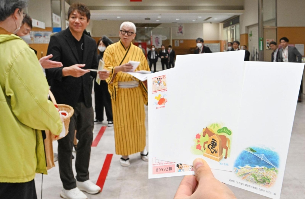 2026年の年賀はがき発売 元タイガース・濱中さんらが記念イベント 神戸中央郵便局 2025/10/30 16:30 印刷 社会 神戸 タイガース 年賀はがきを購入した客に記念品を手渡す濱中治さんや桂きん太郎さん=30日午前、神戸市中央区栄町通6、神戸中央郵便局(撮影・斎藤雅志) 記事へ戻る 関連記事 【写真】年賀状盗み再び郵便ポストに投函…謎の行動繰り返した38歳男「さみしさ紛らわすため…」だけではなかった目的 【写真】誰が何の目的で…朽ち果てた郵便ポスト ゲームボーイをかたどったフォルムが物悲しい 義実家から帰った夜→荷物の底で発見した謎の「封筒」 メッセージに驚き&感謝「こんな義母になりたい」 「プリントゴッコ」まだあった!ノスタルジックに神戸の下町表現 元町で作品展も、作家「やりきった」 プーさんの年賀状、登場したティガーに驚きの声 「1年も生き埋めなんて…」→日本郵便「いや、違うんです」 関連記事 【写真】年賀状盗み再び郵便ポストに投函…謎の行動繰り返した38歳男「さみしさ紛らわすため…」だけではなかった目的 【写真】誰が何の目的で…朽ち果てた郵便ポスト ゲームボーイをかたどったフォルムが物悲しい 義実家から帰った夜→荷物の底で発見した謎の「封筒」 メッセージに驚き&感謝「こんな義母になりたい」 「プリントゴッコ」まだあった!ノスタルジックに神戸の下町表現 元町で作品展も、作家「やりきった」 プーさんの年賀状、登場したティガーに驚きの声 「1年も生き埋めなんて…」→日本郵便「いや、違うんです」 きょうの注目記事 小規模で環境に優しい「自伐型林業」広がる 丹波篠山市など助成 12/16 05:30 社会 丹波 ローカル+α 銀行窓口とカフェ、シェアオフィスを一体化 三井住友銀、尼崎に兵庫1号店 12/16 05:30 経済 阪神 開店閉店 年越し控え、相生市が備蓄米配布 児童扶養手当の受給世帯対象 12/16 05:30 西播 地方行政 <ひだまりを探して-ひきこもり経験者と子どもたち>小さな集会所 12/16 05:30 神戸 連載神戸 私立高の無償化巡り大阪との格差軽減策を検討 兵庫県 12/16 05:30 社会 教育 高校受験 地方行政 再負託 斎藤県政 神戸 <高校入試ナビ>兵庫県の入試問題攻略法と注意点! 12/16 06:00 高校入試ナビ 高校受験 教育 三田市会一般質問、7議員が登壇 子育て支援や農業政策問う 12/16 05:30 三田 地方行政 物価高騰対策 2万円分の商品券を配布へ 香美町 12/16 05:30 但馬 地方行政 姫路市が誘致「世界歴史都市会議」概要決まる 26年11月 12/16 05:30 姫路 <明石市新ごみ処理施設計画の今>(番外編)丸谷市長インタビュー 12/16 05:30 明石 連載明石 地方行政 姫路の養鶏場で鳥インフルか 陽性なら兵庫県内で3年ぶり 12/15 20:04 経済 社会 姫路 従業員の賃金計270万円分未払い、最低賃金下回った疑い 尼崎 12/16 05:30 社会 きょうの注目記事 小規模で環境に優しい「自伐型林業」広がる 丹波篠山市など助成 12/16 05:30 社会 丹波 ローカル+α 銀行窓口とカフェ、シェアオフィスを一体化 三井住友銀、尼崎に兵庫1号店 12/16 05:30 経済 阪神 開店閉店 年越し控え、相生市が備蓄米配布 児童扶養手当の受給世帯対象 12/16 05:30 西播 地方行政 <ひだまりを探して-ひきこもり経験者と子どもたち>小さな集会所 12/16 05:30 神戸 連載神戸 私立高の無償化巡り大阪との格差軽減策を検討 兵庫県 12/16 05:30 社会 教育 高校受験 地方行政 再負託 斎藤県政 神戸 <高校入試ナビ>兵庫県の入試問題攻略法と注意点! 12/16 06:00 高校入試ナビ 高校受験 教育 三田市会一般質問、7議員が登壇 子育て支援や農業政策問う 12/16 05:30 三田 地方行政 物価高騰対策 2万円分の商品券を配布へ 香美町 12/16 05:30 但馬 地方行政 姫路市が誘致「世界歴史都市会議」概要決まる 26年11月 12/16 05:30 姫路 <明石市新ごみ処理施設計画の今>(番外編)丸谷市長インタビュー 12/16 05:30 明石 連載明石 地方行政 姫路の養鶏場で鳥インフルか 陽性なら兵庫県内で3年ぶり 12/15 20:04 経済 社会 姫路 従業員の賃金計270万円分未払い、最低賃金下回った疑い 尼崎 12/16 05:30 社会 社会新着ニュース 社会新着ニュース