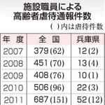高齢者虐待通報10年で10倍 兵庫、18年度老人ホームなど135件