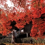 境内を赤く染めるオオモミジ=丹波篠山市味間奥