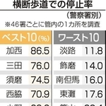 信号機ない横断歩道の「停止率」県内ワーストは淡路署管内 県平均は5割届かず トップは加西