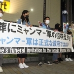 総合 在日ミャンマー人が「国葬」に抗議の声 市民弾圧の国軍政府を招待「悲しい」 神戸 2022/09/26 20:10 ミャンマー国軍政府を招待した日本政府に抗議する在日ミャンマー人ら=神戸市中央区三宮町1 ツイート シェア LINE 記事へ