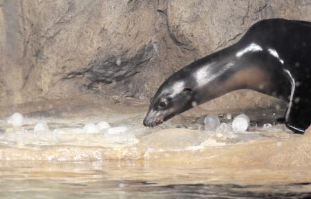 放流に参加したマリンワールド飼育員の佐々木雅大さん(35)は「ゆっくり泳いでいった。自然の中でも元気に育ってほしい」と名残惜しそうに話した。
