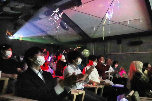• 「ルパン三世 カリオストロの城」の応援上映の様子=27日夜、丹波市氷上町成松、ヱビスシネマ。