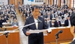 平和を祈りながら書を揮毫(きごう)する催しが3日、丹波市山南町岩屋の石龕寺(せきがんじ)であった。柏原高校書道部13人と書家の向井琢美さん(71)=姫路市=が書道パフォーマンスを披露。生徒がそれぞれ考えたメッセージや、聖徳太子が制定したとされる十七条憲法の文字をしたためた。