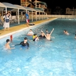 利用者約40人が参加。2グループに分かれ、水が入った消火器を噴射したり、段ボールトイレの組み立て方を聞いたりしたほか、「地震編」や「火災編」といった災害ごとの○×クイズを解いた。福田さんは、阪神・淡路大震災の事例を基に「自分の身は自分で守り、仲間と助け合ってほしい」と呼び掛けた。