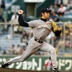 セ・パ交流戦の対広島カープ戦で登板する北海道日本ハムファイターズ時代の鎌倉健さん=2005年5月