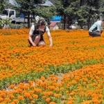 一面オレンジの花畑、マリーゴールド見頃 ハリマ化成加古川製造所