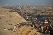 現地時間7日夜(日本時間8日未明)、一帯が闇に包まれて月が徐々に赤黒く欠け始めると、多くの人が通りに出て空を見上げた。高さ約10メートルの分離壁の傍らにたたずんでいたハッサンさんは「抑圧の象徴が月明かりに照らされているだけだ」とつぶやいた。