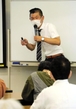 愛称が決まった復元模型の「こまき」と記念写真に納まる奈良県桜井市の松井正剛市長=6日午後、桜井市役所