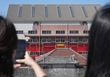 観光客らは7日午後、敷地内の有料区域に立ち入り、正殿を眺めていた。周りには重機やトラックが並んでいるが、フェンスの透明な部分を通して、赤い外観や、獅子をかたどった鬼瓦、竜の装飾「龍頭棟飾」などを見ることができる。