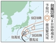 台風は8日午前9時現在、時速約15キロ。中心気圧は935ヘクトパスカル、中心付近の最大風速は50メートル、最大瞬間風速は70メートル。