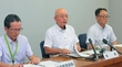 記者会見する私立関西高の元野球部員=16日午後、岡山市北区
