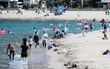 那覇市の「波の上ビーチ」では17日、刺すような日差しの下、外国人観光客が集まっていた。だが日本人客は昨年より減り、パラソル貸し出しなどの商売は不振という。救助監視員の男性(43)は「暑すぎて外のレジャーを控える傾向が出ている」と説明した。