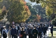 境内にある約3千本のイロハモミジやヤマモミジ、オオモミジなどを700基ほどの照明が照らした。富永真光執事長は「今年は庭の奥まで照らすことを考えて照明を設置したのでひと味違う」と話した。