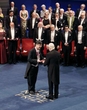 ストックホルム市庁舎の吹き抜けの大広間。オルガンの演奏が鳴り響く中、えんび服やドレスに身を包んだ受賞者らが続々と登場。ゆっくりとした足取りで席に向かった。カール16世グスタフ国王の発声で乾杯し、スウェーデン産マッシュルームを使った前菜や日本産コンブを使用したメイン料理に舌鼓を打った。