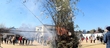現場にいた神社関係者は「女性がしめ縄の入った袋を投げ入れる際に、つんのめる形で火の山に飛び込んでしまった。地面が凍っていて、滑ったように見えた」と語った。