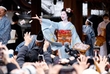 小一郎の幼なじみ直役の白石聖さん、大相撲の両横綱、豊昇龍関と大の里関らも参加。青空の下、小袋が勢いよくまかれると、参拝者らは歓声を上げ、一斉に手を伸ばした。